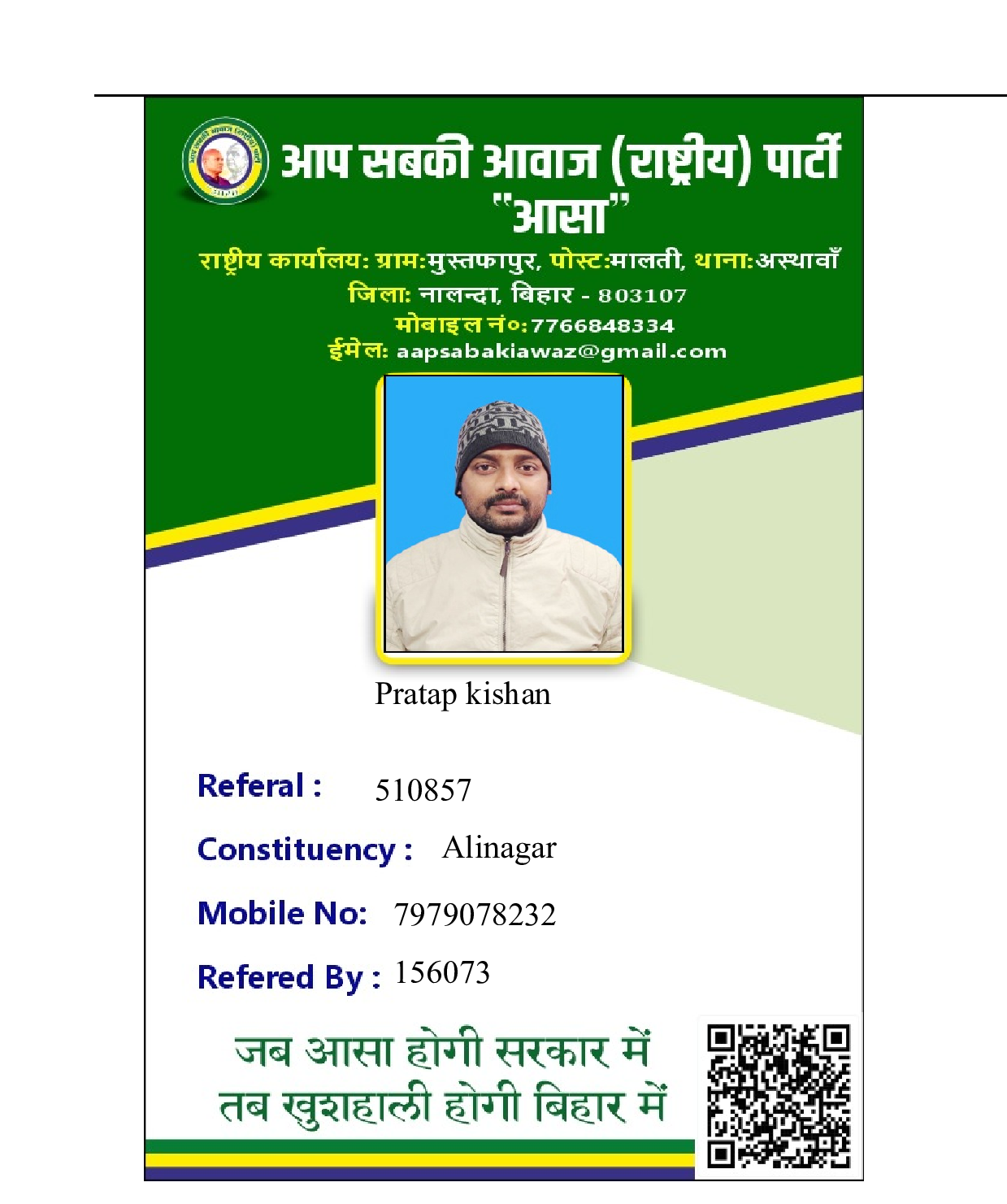 This is the recent member of aapsabkiawaz.org,please login and download you id card from you dashboard |