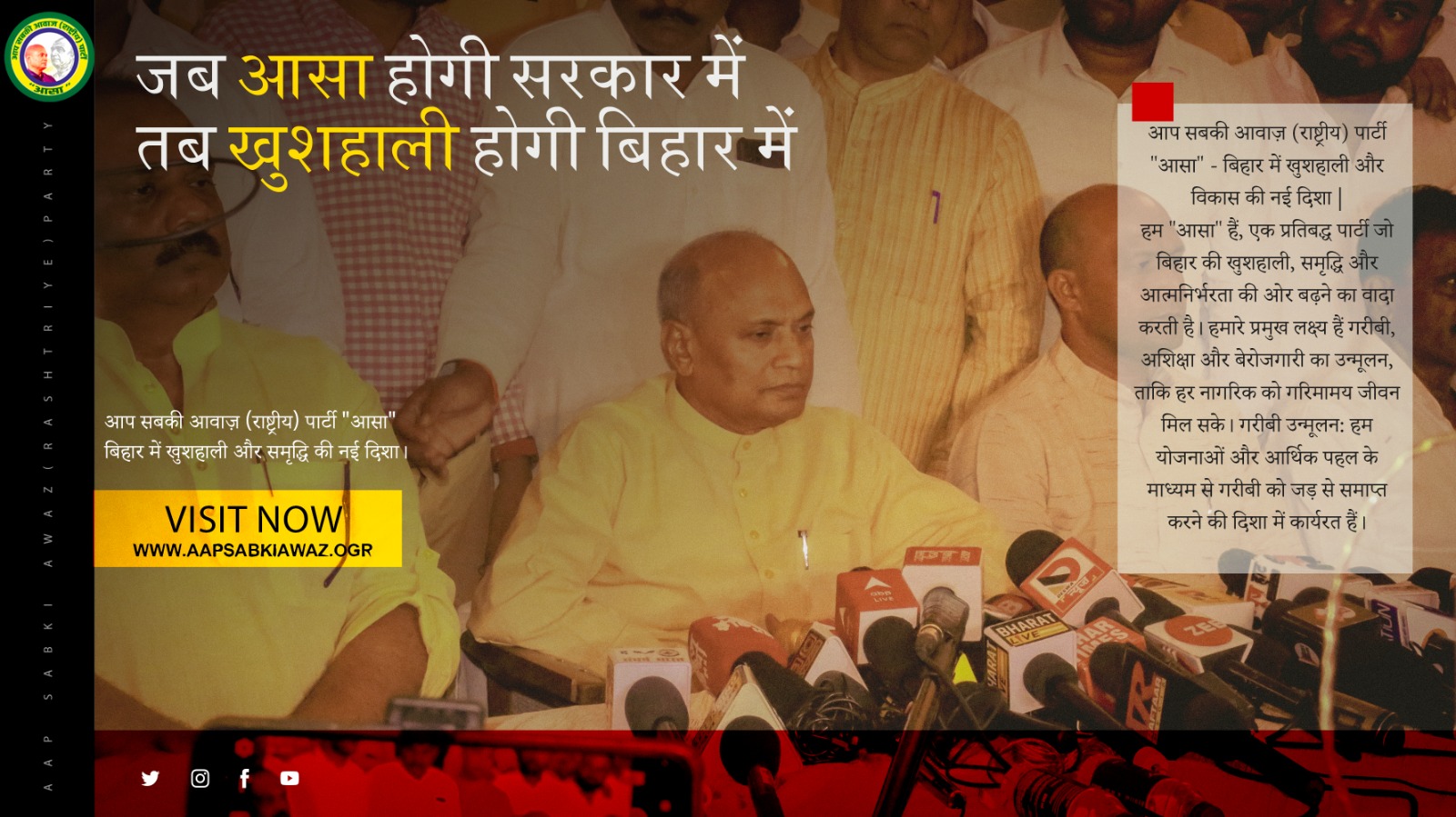 आप सबकी आवाज़ (राष्ट्रीय) पार्टी "आसा" - बिहार में खुशहाली और विकास की नई दिशा |
